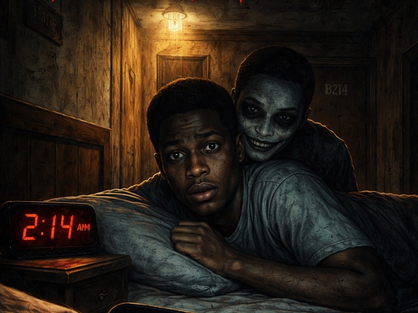 <p>When Sochi resumed for third year, his name wasn’t on the hostel list.</p><p><br/></p><p>But his student ID worked on one door.</p><p><br/></p><p>B214.</p><p><br/></p><p>The corridor ended there. No windows. No cross-ventilation. Just a dead end and a door that looked older than the building itself.</p><p><br/></p><p>Inside:</p><p>Two beds.</p><p>One neatly made.</p><p>One with his name written on a masking tape strip.</p><p><br/></p><p>He didn’t remember writing it.</p><p><br/></p><p>⸻</p><p><br/></p><p>That first night, he woke up at exactly 2:14 a.m.</p><p><br/></p><p>Not because of a sound.</p><p><br/></p><p>Because he couldn’t breathe.</p><p><br/></p><p>The air felt… used.</p><p><br/></p><p>Like someone else had already inhaled everything in the room.</p><p><br/></p><p>Then he heard it.</p><p><br/></p><p>Breathing.</p><p><br/></p><p>Slow. Deep. Close.</p><p><br/></p><p>From the other bed.</p><p><br/></p><p>He didn’t turn immediately.</p><p><br/></p><p>Because the breathing wasn’t synced with his.</p><p><br/></p><p>It was slightly delayed.</p><p><br/></p><p>Like an echo trying to copy him.</p><p><br/></p><p>⸻</p><p><br/></p><p>The next morning, he went to the hostel office.</p><p><br/></p><p>“There’s no B214,” the matron said without looking up.</p><p><br/></p><p>“But I slept there.”</p><p><br/></p><p>She finally raised her eyes.</p><p><br/></p><p>Her face changed.</p><p><br/></p><p>“You shouldn’t joke about that number.”</p><p><br/></p><p>“Why?”</p><p><br/></p><p>Silence.</p><p><br/></p><p>Then she whispered:</p><p><br/></p><p>“That room was sealed.”</p><p><br/></p><p>⸻</p><p><br/></p><p>That night, he tried not to sleep.</p><p><br/></p><p>2:13 a.m.</p><p><br/></p><p>He stared at his phone.</p><p><br/></p><p>2:14.</p><p><br/></p><p>The lights went off.</p><p><br/></p><p>Not a power outage.</p><p><br/></p><p>The switch physically flipped down on its own.</p><p><br/></p><p>He watched it happen.</p><p><br/></p><p>Slowly.</p><p><br/></p><p>Like invisible fingers pressing it.</p><p><br/></p><p>The breathing started again.</p><p><br/></p><p>But this time—</p><p><br/></p><p>It was on his bed.</p><p><br/></p><p>Right behind his ear.</p><p><br/></p><p>Warm.</p><p><br/></p><p>Moist.</p><p><br/></p><p>He felt the mattress dip.</p><p><br/></p><p>Something was lying down beside him.</p><p><br/></p><p>He couldn’t move.</p><p><br/></p><p>Sleep paralysis.</p><p><br/></p><p>Or something worse.</p><p><br/></p><p>A voice, cracked and dry, whispered:</p><p><br/></p><p>“You took my bedspace.”</p><p><br/></p><p>His body began to feel heavy. Numb.</p><p><br/></p><p>Like something was pressing into him.</p><p><br/></p><p>Not on him.</p><p><br/></p><p>Into him.</p><p><br/></p><p>Through his back.</p><p><br/></p><p>Through his chest.</p><p><br/></p><p>Like it was aligning its body with his.</p><p><br/></p><p>Matching him.</p><p><br/></p><p>Merging.</p><p><br/></p><p>⸻</p><p><br/></p><p>His phone screen lit up on the floor.</p><p><br/></p><p>Camera open.</p><p><br/></p><p>Front camera.</p><p><br/></p><p>But he wasn’t holding it.</p><p><br/></p><p>On the screen, he saw himself on the bed.</p><p><br/></p><p>Eyes open. Frozen.</p><p><br/></p><p>And behind him—</p><p><br/></p><p>Another face.</p><p><br/></p><p>Identical.</p><p><br/></p><p>Except its smile was wider.</p><p><br/></p><p>Too wide.</p><p><br/></p><p>The thing behind him blinked.</p><p><br/></p><p>He didn’t.</p><p><br/></p><p>⸻</p><p><br/></p><p>The next morning, students saw Sochi walking out of B213.</p><p><br/></p><p>Confused.</p><p><br/></p><p>He laughed when they asked why he was staring at the wall.</p><p><br/></p><p>“There’s no B214,” he said casually.</p><p><br/></p><p>“There never was.”</p><p><br/></p><p>But that night, at exactly 2:14 a.m., someone in B213 woke up because they couldn’t breathe.</p><p><br/></p><p>And heard breathing.</p><p><br/></p><p>Slightly delayed.</p><p><br/></p><p>Right behind them.</p><p><br/></p><p>⸻</p><p><br/></p><p>The disturbing part?</p><p><br/></p><p>The hostel record now shows:</p><p><br/></p><p>Previous occupant of B214: Sochi Ihekwaba.</p><p>Status: Reassigned.</p><p><br/></p><p>No one knows where.</p><p><br/></p>