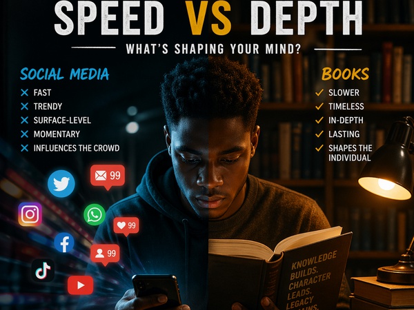 <p>Everybody is talking, but how many people are actually thinking?</p><p><br/></p><p>Social media has given us speed—fast news, fast opinions, fast trends. One post, one tweet, one video… and suddenly everyone has something to say. But if we’re being honest, most of it is surface-level. We react more than we reflect. We scroll more than we study. You can spend hours online and still not walk away with one solid idea that truly sticks.</p><p><br/></p><p>Books, on the other hand, don’t rush you. They don’t scream for your attention. They demand your time, your focus, your patience—and that’s exactly why they matter. They break things down, they build arguments, they connect ideas. They don’t just tell you what to think, they show you how to think.</p><p><br/></p><p>Social media can make you feel informed, but books actually make you understand. One feeds you in bits, the other builds you in layers. One is loud and everywhere, the other is quiet but powerful.</p><p><br/></p><p>Let’s be real—social media influences the crowd. It controls trends, shapes conversations, and decides what people talk about today. But books? Books shape the individual. And it’s always individuals with depth, clarity, and strong thinking that end up influencing the world tomorrow.</p><p><br/></p><p>So no, speed is not the same as depth. Virality is not the same as value. And being updated is not the same as being educated.</p><p><br/></p><p>At the end of the day, the real question isn’t which one is louder—it’s which one is actually shaping your mind.</p><p><br/></p><p>📌 So tell me… are you being informed, or just entertained?</p><p><br/></p><p><br/></p>