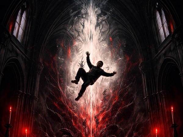<p>They taught Eli that God never dropped His children.</p><p><br/></p><p>He released them.</p><p><br/></p><p>That was the word Pastor Malachi loved—released—as if falling into darkness was a privilege granted only to those who disappointed Heaven deeply enough.</p><p><br/></p><p>Eli learned this lesson early, kneeling beside his father at the altar while candle wax dripped like melting teeth onto the floor. The church smelled of old wood, iron, and something faintly rotten beneath the incense. It was a place where prayers echoed too long, as if something else was repeating them back wrong.</p><p><br/></p><p>“Look up when you pray,” Malachi would command, fingers digging into Eli’s neck. “If you look down, you invite lower things to listen.”</p><p><br/></p><p>Eli always looked up.</p><p><br/></p><p>Even when his knees cracked.</p><p>Even when blood soaked through his trousers.</p><p>Even when his mother coughed herself hollow in the back room, her lungs tearing apart with wet, choking sounds that prayers could not stitch back together.</p><p><br/></p><p>She begged God softly.</p><p><br/></p><p>Malachi rebuked her loudly.</p><p><br/></p><p>“Faith does not whimper,” he told her as she vomited black into a basin. “If He wanted you healed, you would already be standing.”</p><p><br/></p><p>Eli watched her die on the floor, eyes wide, hands clawing the air like she was falling through something invisible. The last sound she made was not a prayer—it was a gasp so sharp it felt like it cut through Eli rather than his mother.</p><p><br/></p><p>That night, the church groaned.</p><p><br/></p><p>Not the wood.</p><p>Not the pipes.</p><p><br/></p><p>The foundation.</p><p><br/></p><p>Eli lay awake in his childhood room behind the pulpit, listening as something beneath the building inhaled slowly, deeply, savoring the silence his mother left behind.</p><p><br/></p><p>Then it spoke.</p><p><br/></p><p>“She slipped.”</p><p><br/></p><p>Eli pressed his ear to the floor, heart hammering.</p><p><br/></p><p>“You watched.”</p><p><br/></p><p>The voice was not loud. It didn’t need to be. It crawled straight into him, coiling around his spine.</p><p><br/></p><p>“Do you know why He didn’t catch her?” it asked.</p><p><br/></p><p>Eli shook, whispering, “Stop.”</p><p><br/></p><p>“He only catches what He wants to keep.”</p><p><br/></p><p>The dreams came after that.</p><p><br/></p><p>Always the same.</p><p><br/></p><p>Eli stood at the edge of a bottomless pit carved into the shape of a cathedral. The walls were lined with faces—men, women, children—all frozen mid-fall, mouths stretched in eternal apology. Above him loomed a blinding light with no face, no arms.</p><p><br/></p><p>And behind him stood his father.</p><p><br/></p><p>Malachi never pushed.</p><p><br/></p><p>He only loosened his grip.</p><p><br/></p><p>“You’re slipping, Eli,” Malachi said in waking life too, his eyes hollowing day by day. “You don’t pray like you used to. You don’t bleed like you used to.”</p><p><br/></p><p>Something was wrong with the church now. The Bible on the altar began to swell, its pages sticking together like damp skin. Candles hissed when lit, dripping wax the color of bruises. Sometimes Eli swore the cross above the pulpit leaned toward him.</p><p><br/></p><p>The voice beneath the floor returned every night.</p><p><br/></p><p>“He is afraid,” it said of Malachi.</p><p>“He knows.”</p><p><br/></p><p>Knocks began appearing on Eli’s bedroom door from the inside of the walls. Slow. Patient. Three at a time. When he screamed, Malachi accused him of inviting demons through doubt.</p><p><br/></p><p>So Malachi decided to fix his son.</p><p><br/></p><p>The ritual was older than scripture, copied from margins and burned sermons Malachi claimed were revelations. He carved symbols into the church floor himself, hands trembling, sweat dripping into the grooves like offerings.</p><p><br/></p><p>On the final night, Eli was dragged to the altar.</p><p><br/></p><p>Candles ringed him. The air thickened until breathing felt like swallowing oil. The Bible split open, its spine tearing with a sound like cartilage snapping. Words slithered off the pages and crawled along the floor, rearranging themselves into symbols that pulsed faintly, like veins.</p><p><br/></p><p>“This will hurt,” Malachi said, voice quaking with devotion. “But pain is proof He still sees you.”</p><p><br/></p><p>Eli looked up at his father—really looked.</p><p><br/></p><p>Malachi’s shadow stretched wrong behind him, too long, too bent, as if something else wore his outline poorly.</p><p><br/></p><p>“Which Father are you talking about?” Eli whispered.</p><p><br/></p><p>The candles went out all at once.</p><p><br/></p><p>Darkness fell like a body hitting water.</p><p><br/></p><p>The floor split open.</p><p><br/></p><p>Not cracking—opening—peeling back layers of stone and bone and old prayers packed together like corpses. From the wound rose something vast and heavy, dragging grief behind it like chains.</p><p><br/></p><p>It had a man’s shape once.</p><p><br/></p><p>Now it was a collection of endings.</p><p><br/></p><p>Its eyes were pits within pits, each one a different fall. Its mouth opened sideways, splitting its face, filled with hands instead of teeth—hands reaching, clutching, catching.</p><p><br/></p><p>“I gather what He discards,” it said, voice layered with thousands of whispers. “I keep what Heaven lets go.”</p><p><br/></p><p>Malachi screamed scripture until his tongue blackened, swelling until it burst between his teeth and slithered onto the altar, still twitching.</p><p><br/></p><p>The thing didn’t look at him.</p><p><br/></p><p>It knelt before Eli.</p><p><br/></p><p>“You were never His son,” it said gently. “You were leverage.”</p><p><br/></p><p>Eli felt something inside him finally give way. Not faith. Not fear.</p><p><br/></p><p>Hope.</p><p><br/></p><p>He s