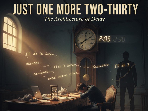<p>I don't feel like writing now, I'll do it later."</p><p>It's the promise we break silently.</p><p>"Once the clock hits 2:00, I'll start, I swear."</p><p>Then 2:05 passes.</p><p>"Well, I guess I'll just begin at 2:30 then."</p><p>And so the time slips away, and the task remains undone.</p><p>Am I the only one stuck in this endless, circular delay?</p><p>Whether I am or not, the problem is real, and it needs a solution.</p><p>Then the second thought creeps in: Is this even a problem?</p><p>I'm not lazy. I just need to figure it out later. I need more time</p><p>to make sure it's perfect. I'll start now, but first, I need a rest...</p><p>Ahhh, excuses, excuses. I've literally dropped this write-up five times now.</p><p>All of this is just to live in denial, knowing full well</p><p>that what I'm doing is pure Procrastination.</p><p>There are two hard truths that help with this huge problem:</p><p>First: Stop lying to yourself.</p><p>You and I know that all the excuses you come up with to avoid the task are invalid. Tell yourself the truth and start working toward it.</p><p>Second: Understand what procrastination actually is.</p><p>It's postponing things you can do now for later, purely because you are lazy. Yes, lazy.</p><p>It's tough to accept, but that's the truth. We're just lazy. (And I say "we" because, believe me, I'm the chief offender here.)</p><p>I saw something once that really struck me:</p><p>Procrastination is telling God to give you more time for something He already gave you time for.</p><p>Stop wasting your time wallowing.</p><p>Do what you have to do now.</p><p>I will too, but maybe later🥲😅</p>