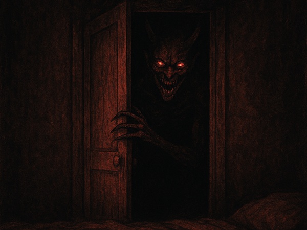 <p>The darkness wasn’t empty.<br/></p><p><br/></p><p>I could feel it—warm breath inches from my face, the mattress dipping beside me, something shifting its weight slowly, deliberately, like it wanted me to know it was settling in.</p><p><br/></p><p>I tried to move.</p><p><br/></p><p>I couldn’t.</p><p><br/></p><p>My body felt pinned by invisible hands pressing down on my chest. All I could hear was my own shallow breathing… and something else. A low chuckle, so soft it felt like it vibrated inside my skull rather than in the air.</p><p><br/></p><p>“Do you want the lights back, Sochi?”</p><p>The devil’s voice was mockingly gentle—almost playful.</p><p><br/></p><p>I didn’t answer.</p><p><br/></p><p>I couldn’t answer.</p><p><br/></p><p>A sharp fingertip traced a line down my arm. It wasn’t a touch—it was a claim, slow and deliberate. My skin burned where it dragged, like the heat was sinking under my flesh.</p><p><br/></p><p>“You should have said goodnight,” it whispered.</p><p><br/></p><p>The light flickered once—just enough for a flash of its silhouette. Tall. Bent. Wrong. The instant I saw it, the light snapped out again as if the room itself was terrified to keep looking.</p><p><br/></p><p>Something cold pressed against my ear.</p><p><br/></p><p>A mouth.</p><p><br/></p><p>“Do you know why I came out tonight?” it breathed.</p><p>“I come out when you stop pretending you aren’t afraid of me.”</p><p><br/></p><p>My heartbeat thundered.</p><p><br/></p><p>Then slowly… painfully slowly… the weight lifted.</p><p><br/></p><p>The presence slid off the bed. I could hear its feet on the floor—bare, wet, dragging slightly like something heavy clung to them. It moved back toward the closet.</p><p><br/></p><p>But it didn’t go inside.</p><p><br/></p><p>Instead, the devil stood at the doorway, half in shadow, half in my room. I still couldn’t see its face—just the shape of its grin glowing faintly red.</p><p><br/></p><p>“You thought the closet was my prison,” it said softly.</p><p>“But it was yours.”</p><p><br/></p><p>The closet door shut.</p><p><br/></p><p>The room fell silent.</p><p><br/></p><p>For five whole minutes, nothing moved. I didn’t breathe. I didn’t blink. I waited for the devil to open the door again… but it didn’t.</p><p><br/></p><p>Eventually, trembling, I reached for my phone to turn on the flashlight.</p><p><br/></p><p>The screen wouldn’t turn on.</p><p><br/></p><p>Dead.</p><p><br/></p><p>Even though I had charged it an hour ago.</p><p><br/></p><p>I forced myself to sit up, heart still hammering, and stared at the closet. The room was quiet now—too quiet. I almost convinced myself it was over.</p><p><br/></p><p>Then I noticed something.</p><p><br/></p><p>The closet door was wrong.</p><p><br/></p><p>There were scratches on it now—long, fresh, and deep enough to peel away chunks of wood. They hadn’t been there before.</p><p><br/></p><p>And carved into the center, crooked and shaky like someone did it while laughing, were four words:</p><p><br/></p><p>“SEE YOU TOMORROW, SOCHI.”</p><p><br/></p><p>The air froze.</p><p><br/></p><p>My breath turned white.</p><p><br/></p><p>And behind the door…</p><p><br/></p><p>something tapped back.</p>