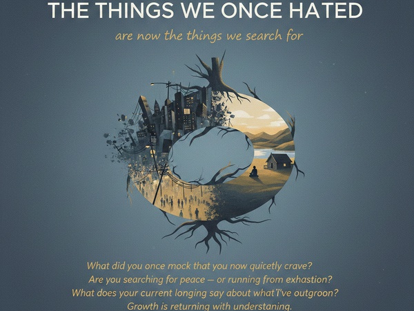 <p><em>We mocked it.</em></p><p><em>We avoided it.</em></p><p><em>Now we search for it.</em></p><p><em><br/></em></p><p>There was a time silence felt awkward, routine felt boring, and being alone felt like failure. Now we search for those same things like they’re antidotes. </p><p><br/></p><p>This insight explores what exhaustion does to our values—and how experience quietly rewrites what we desire. It isn’t about trends or nostalgia. It’s about how growth often looks like returning, not advancing. About what it means when your longings change, and what they reveal about what you’ve outgrown without realising it.</p>